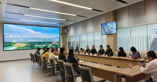 汉阳融媒体中心副主任肖娟热情接待调研组,并带领参观多功能演播厅、导播间、采编中心等核心功能区,详细介绍中心在内容生产、技术应用及产业融合领域的创新实践。