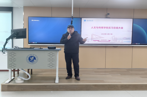 会议最后,郭彧院长与董继兵副书记在总结发言中充分肯定了同学们的实习成果,并寄语2026届毕业生“敢于尝试、做好准备、持续发声”,将实习中所获经验转化为职业发展的坚实基础,在未来各自领域中绽放光彩。