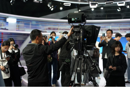 同学们在咸宁广播电视台总编室副主任秦俊俊、李欣,主持人邹杰的带领下,依次参观了一号演播厅、二号演播厅及大型晚会演播厅。市融媒体中心工作人员详细讲解了导播流程和自动化摇臂系统的操作,并现场展示了市融媒体中心专用的直播车和新闻专用摄像机。每一项先进设备的展示,都让同学们直观感受到了现代传媒行业的高效与严谨,也使大家对专业设备和演播流程有了更加清晰的认识。