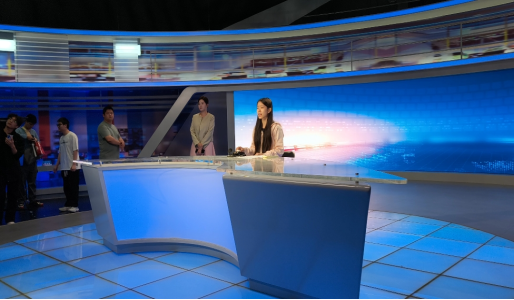 在咸宁市融媒体中心工作人员的引导下,同学们依次参观了新闻直播间、大型演播厅、新媒体发展中心、后期剪辑室与内容编辑区。