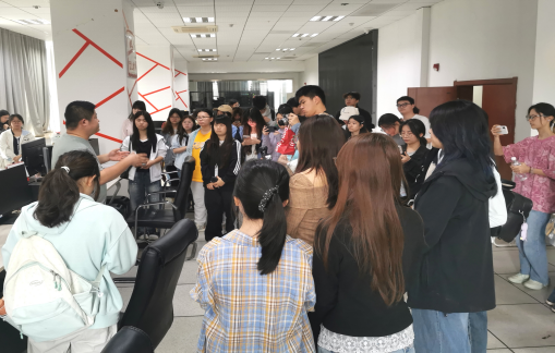 在大型演播厅,大家了解了文艺展演、政务活动等大型传媒项目从策划到节目录制的全链条工作要点。随后,同学们走进新媒体发展中心,近距离观察青年从业者的日常工作状态;在后期剪辑室和内容编辑区,系统了解了媒体内容“采、写、拍、编、审”全流程运作,对融媒体时代媒体机构的工作体系有了更加全面的认识。